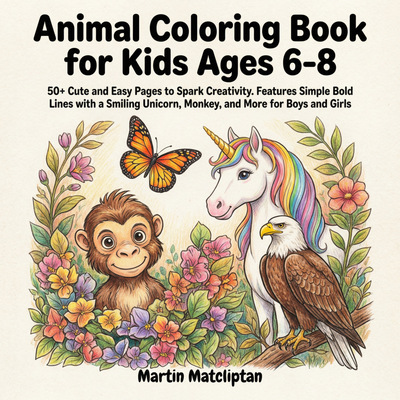 Animal Coloring Book for Kids Ages 6-8: 50+ Cute and Easy Pages to Spark Creativity. Features Simple Bold Lines with a Smiling Unicorn, Monkey, and More for Boys and Girls